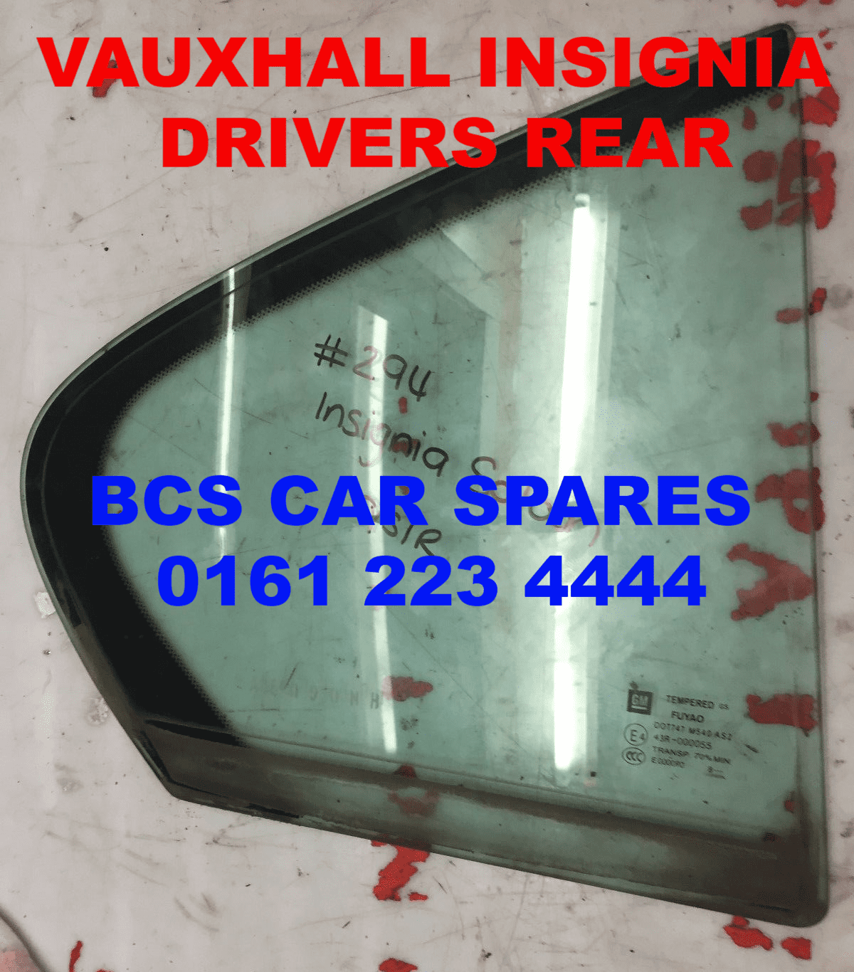 VAUXHALL INSIGNIA DRIVERS SIDE DOOR REAR 1/4 GLASS USED 2009 - 2013 HATCHBACK